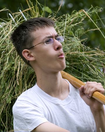 peasant going lay hay in a stock