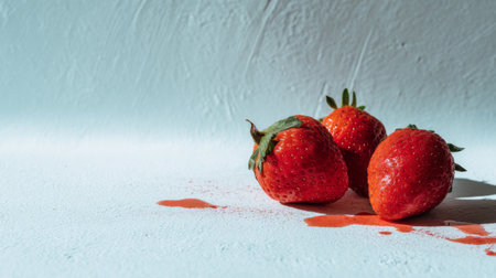A captivating image of fresh strawberries resting on a light surface, showcasing their vibrant color and juicy texture. Ideal for food and health themes.