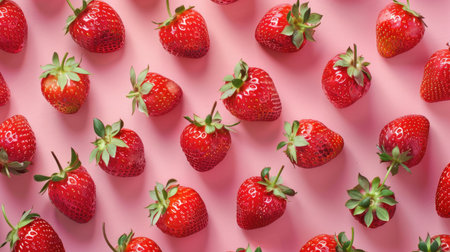 Mouthwatering strawberries laid out on a contrasting pink backdrop, promising a delightful burst of flavor and color