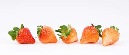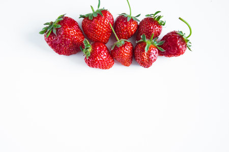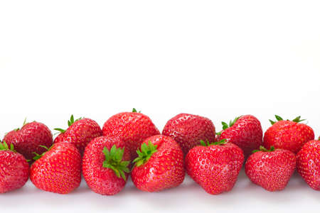 fresh strawberries in a row on white background,panoramic food mock up,good copy space