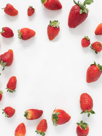 Strawberries isolated on white background with copy space for your text. Top view. Flat lay pattern.