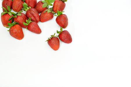 Strawberry background. Many strawberries on white background. Seasonal berry