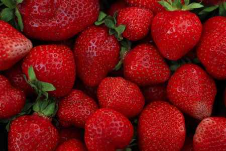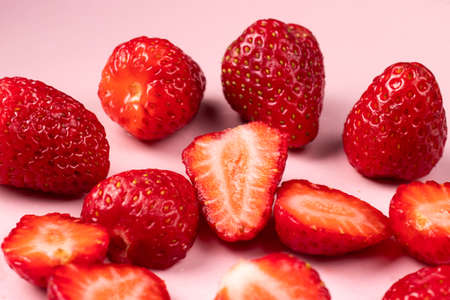 Red delicious strawberries for desserts and fresh juices in summer for ice cream on a limited background