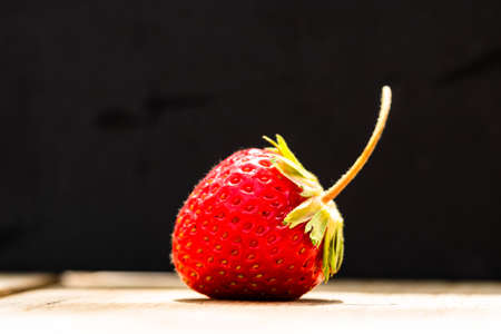 Ripe juicy beautiful red strawberry on a wooden dark background closeup