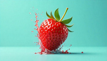 Fresh strawberry with splashing juice on a soft background
