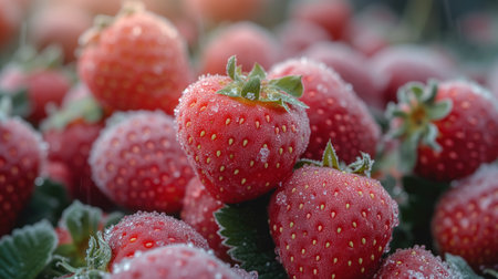 food background frozen strawberries closeup, realistic illustration