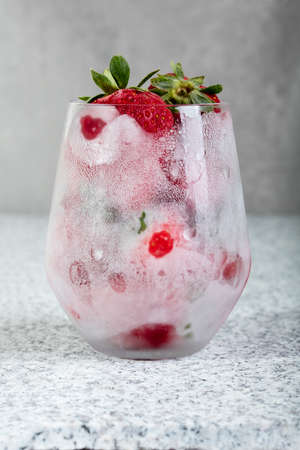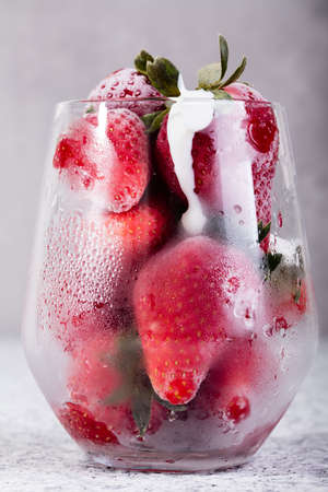 Frozen red strawberry in glass.