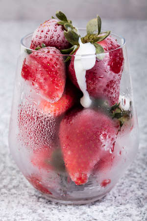 Frozen strawberry with sour cream in glass.