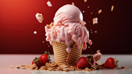 AI Generated. Ice cream and strawberry texture with copyspace background