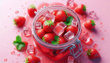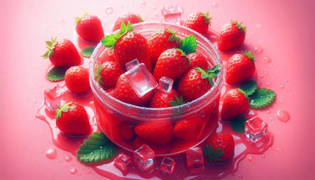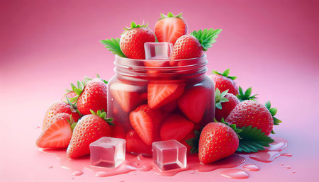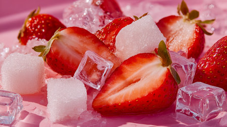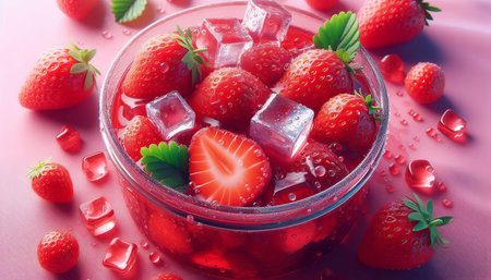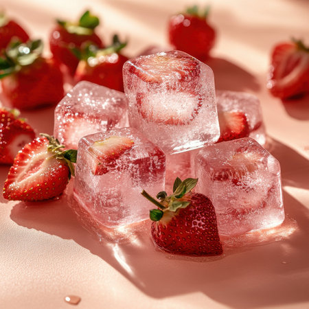 Refreshing strawberry ice cubes culinary delight kitchen close-up food presentation summer vibes