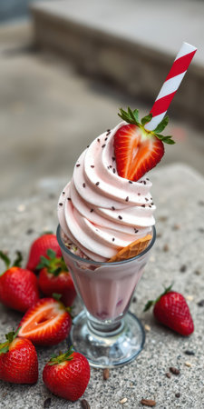 Indulge in this vibrant bowl of strawberry ice cream, surrounded by fresh berries and wisps of fog. Perfect for summer enjoyment or sweet cravings.