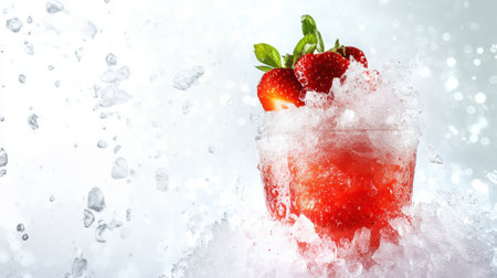 Lush strawberry cocktail with crushed ice and vibrant garnish, an inviting and energizing summer treat.