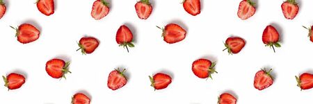 Creative fruit banner. Juicy strawberries on the white background