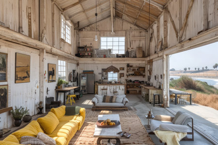 barn converted into chic and stylish living space with rustic accents, created with generative ai