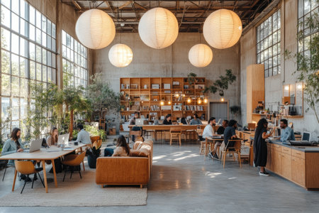 Modern Open-Plan Office With Industrial Decor on a Sunny Day