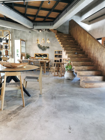 Bantul, Yogyakarta/Indonesia - July, 2022.Indoor arrangement of the room and outside using seats and tables and other unique equipment at the Nast cafe and donut in Bantul,yogyakarta
