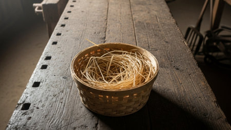 Close-up illustration of a handwoven wicker basket made from natural fibers, emphasizing texture and craftsmanship. Perfect for topics related to storage, home decor, and traditional crafts.