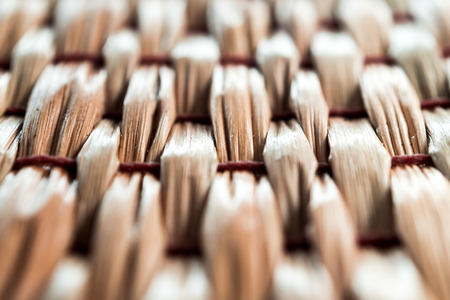 Close up view of a detailed woven texture made from natural fibers highlighting artistry.