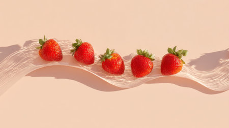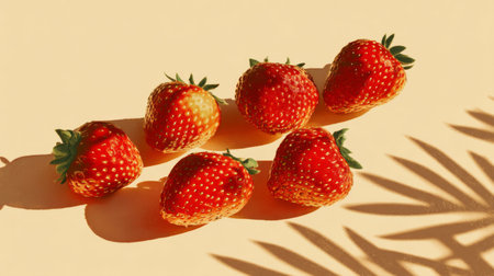 A vibrant display of fresh strawberries resting on a soft background. Elegant shadows enhance the natural beauty, making this image perfect for food enthusiasts and healthy lifestyle promotion.