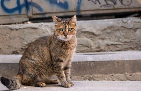 Tel Aviv Israel January 13, 2020 View of abandoned domestic cat living in the streets of Tel Aviv in the afternoon