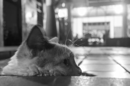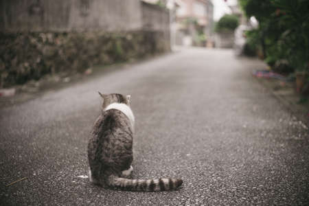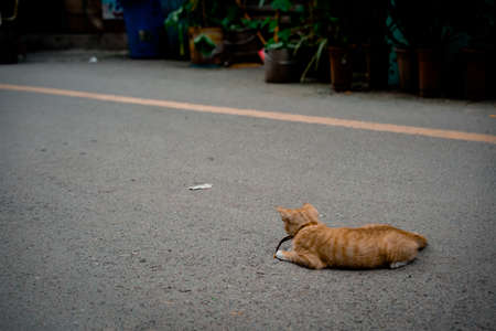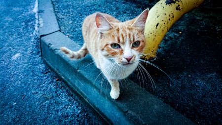 View of domestic cat living in the streets of Limassol in Cyprus island