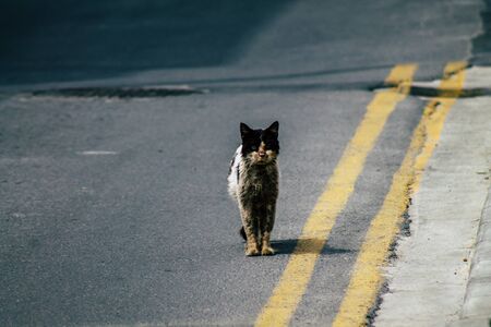 Limassol Cyprus March 20, 2020 View of abandoned domestic cat living in the streets of Limassol