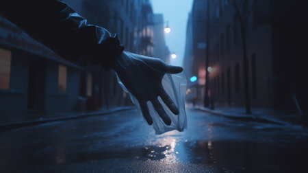 Used glove on empty street of New York City during Coronavirus quarantine lockdown
