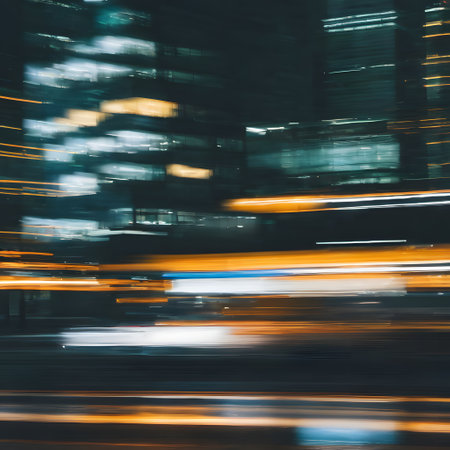 Vibrant cityscape of night lights with dynamic colors and blurred effects enhancing visual allure