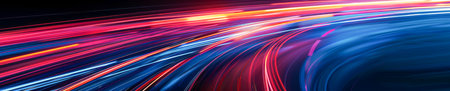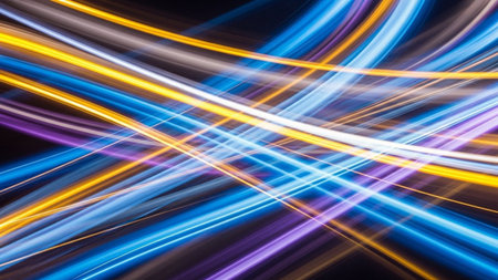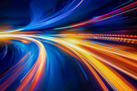 This vibrant image features colorful light trails in motion against a dark background, perfect for themes of technology, innovation, and energy.
