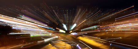 Night city tunnel light trails speed motion