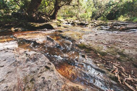 Refreshing stream flowing over dry riverbed symbolizing renewal of life