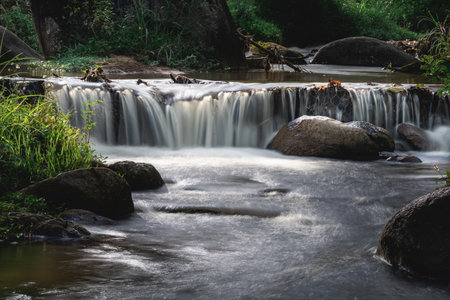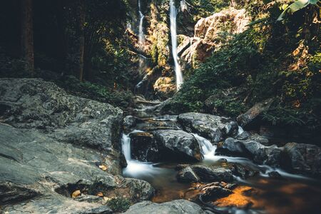 Beautiful waterfall in the forest, long exposure photo, soft focus