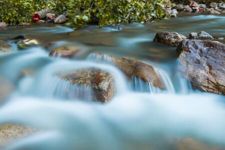 Flowing water and rocks in natural streams