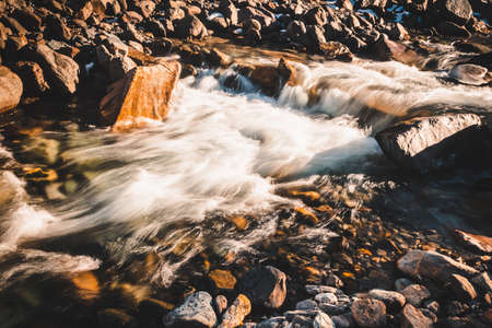 Close-up detail of mountain river, water background.
