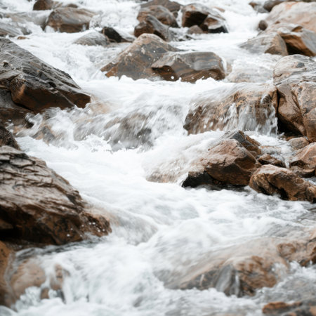 Closeup of Motion-Blurred Water Rapids Flowing over : Generative AI