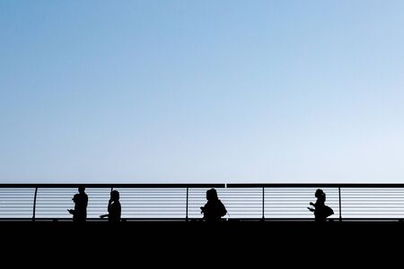 Silhouettes of unknown tourists on observation deck in the evening, tele shot