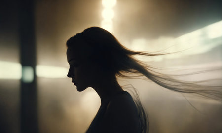 Blurry motion silhouette of a girl with long hair. ai generative.