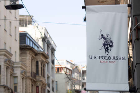 Istanbul, Turkey - October-27.2019: Base. Polo Assn. poster of the brand hangs in the building. In white background. Photographed on the street.