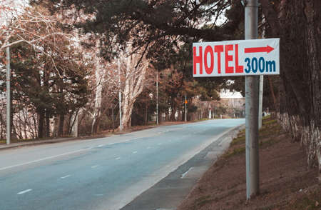 Hotel sign closeup in the town