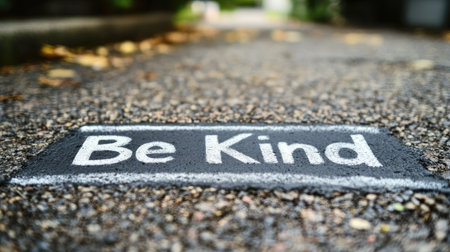 Chalk words Be Kind on a pavement, symbolizing shared kindness messages, with space for World Kindness Day text