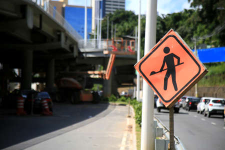 salvador, bahia, brazil - may 26, 2021: transit dicative plaque on a public highway during the construction of the exclusive BRT highway in the city of Salvador.