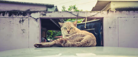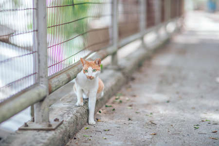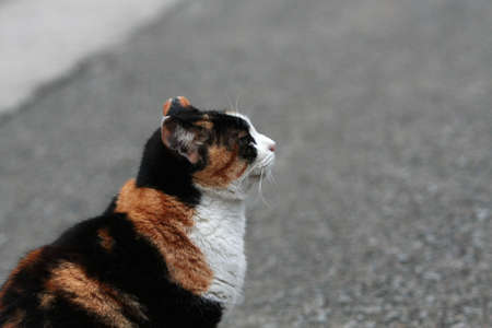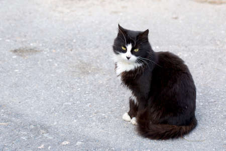 Alone Stray cat, outdoor. Pet animal; stray cat.