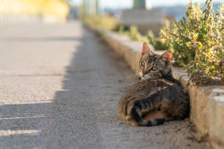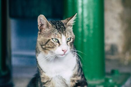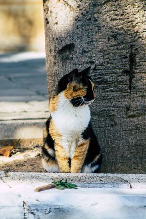 View of domestic cat living in the streets of Limassol in Cyprus island