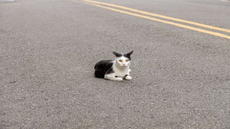 Stray cat relaxing by the roadside of satoyama
