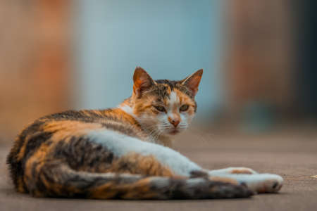 Multicolored stray cat on the street of Beirut
