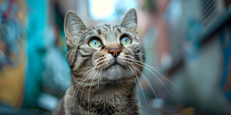 Urban Cat: Capturing Street Art Style with a Rapper Vibe. Concept Street Art Style, Rapper Vibe, Urban Cat, Graffiti Backdrops, Edgy Portraits