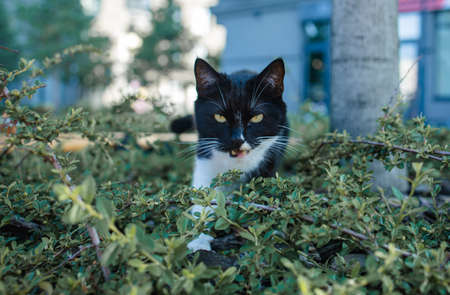 Domestic cat in the streets of the city. Close up.