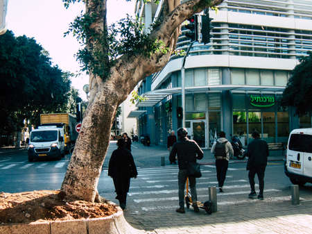 Tel Aviv Israel February 18, 2019 View of unknown Israeli people walking in the streets of Tel Aviv in the afternoon