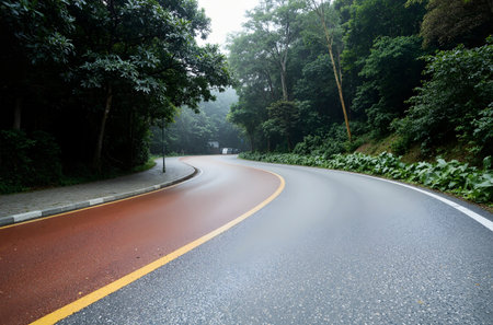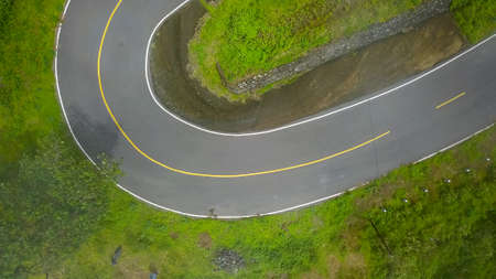 Curve road in the forest with fog at Chiang Mai, Thailand