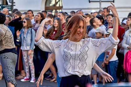 Grodno, Belarus, September 8, 2019 city festival Dancing Grodno. Youth group dance street dancing on the street.